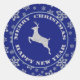 Este é um adesivo bonito para uso versátil durante o Holiday Season. Ele apresenta uma borda prateada com falso brilho de neve. O centro azul tem uma rena brilhante falsa e texto que diz Feliz Natal e Feliz ano novo. Elegante! *Observe que a imagem está impressa e não contém nenhuma falha real.*