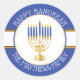 Adesivo Redondo Azul | Ronda Clássica Dourada Menorah Happy Hanukk