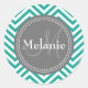 Adesivo Redondo Azul Teal e Cinza Monograma Zigzag