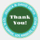 Adesivo Redondo Azul Verde e Branco Retro Obrigado! Endereço de De