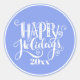 Azul vinca com adesivo de selo de envelope "Felizes Festas" prateado e personalizável com o ano.