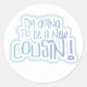 Sombras de design de texto azul dizem "Eu vou ser um novo primo!" em futuros primos T-shirts, cartas, canecas, botões, ímãs e muito mais!