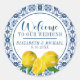 Um bonito adesivo de boas-vindas decorado com limões e azulejo azul italiano. Perfeito para receber seus convidados de casamento... projetados para você pelo Blackberry Boulevard.