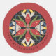 A etiqueta redonda clássica moderna apresenta um design de azulejo da cozinha na moda numa paleta de cor vermelha e preta com sotaques azuis, amarelos e verdes. Texto personalizável exibido em uma borda redonda complementar. Mostrado com uma mensagem caseira personalizável de 'da cozinha do', apresentada em fontes modernas em uma fronteira redonda vermelha complementar, você pode personalizar usando os campos fornecidos. Ideal para a sua jardinagem, cozinhar, latas, produtos assados caseiros, presentes de cozinha ou decoração.
