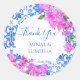 Azulejos azuis e Bougainvillea elegante grego Santorini Mykonos, obrigado de casamento temático, você favorece adesivos.