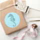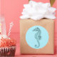 Um adesivo redondo para combinar o nosso convite do "Azure Seacavalo" com uma imagem vintage de um cavalo marinho a azul. Veja o convite correspondente, confetti, etiqueta de favor quadrado, sacos de presentes, etiqueta e papel de embalagem. Ver toda a coleção do "under the Sea Sticker" nos CONVITES | Seção Stickers & Labels