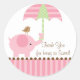 Obrigado de Chá de fraldas bonito que você cola apresenta um doce bebê elefante segurando um guarda-chuva rosa e verde com um passarinho marrom. Vinheta perfeita para favores de bebês ou selos de envelope de convite! Os convites correspondentes, selos postais e notas de agradecimento estão disponíveis no nosso compro em www.celebrateitinvites.com. ©Cocoa Studio