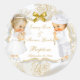 Adesivo Redondo Baby Girl Twins Comunhão Batismo Dourado Cruz