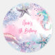 Adesivo Redondo Baça de aniversário de sereia magia submarina