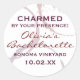 Os adesivos de festa de solteira de casamento em forma de chic apresentam anéis escuros desbotados inspirados em manchas de vinho, e texto personalizado "encantado pela sua presença" que pode ser personalizado.
