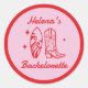 Adesivo Redondo Bachelorette Vermelho e Rosa da Cowgirl Costeira