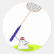 Uma ilustração bonita de um obturador de badminton segurando uma raquete de badminton pronta para um jogo. Imagem disponível em vários presentes e produtos. Adesivos.