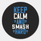Adesivo Redondo Badminton - Fique calmo e esmague o duro