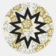 Uma simples estrela de 9 lados em preto profundo, sobre um fundo de padrões florais dourados e prateados. Esta estrela é um símbolo da fé Baha'i. Disponível em adesivos em 7 formas, incluindo redonda, oval, em forma de estrela, quadrada e muito mais. De Scarebaby Design, apoiado pela garantia Zazzle.