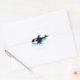 design de aquarela tradicional de uma orca negra e branca ou de uma baleia assassina com água azul gotejando dela em um adesivo