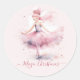 Adesivo Redondo Balerina de cachorrinho rosa de Natal