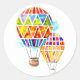 design de aquarela tradicional de dois balões coloridos de ar quente no céu, sobre um adesivo