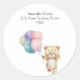 "Não podemos esperar". Celebrar com esta festa de chá de fraldas do ursinho de pelúcia! Urso de pelúcia bonitinho de aquarela com balões coloridos. Fundo com céu azul-rosa-aquarela. Itens correspondentes disponíveis.