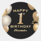 Adesivo Redondo Balões Dourados e Pretos do Partido primeiro anive