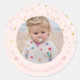 Este adesivo de aniversário de uma garota rosa e dourada apresenta um confete fofo com um modelo fotográfico. Uma adição perfeita a favoritos para festas para o chá de fraldas ou aniversário de uma menina. Convites e suprimentos de festa estão disponíveis no meu compro BaraBomDesign.