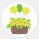 Um design bonito com um cheio de cesto de flores amarelas com três balões em tons de amarelo e verde acoplados.