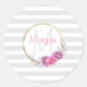 Adesivo Redondo Bandas de Cinza Rosa Monograma Floral Elegante