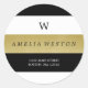 Rótulo de endereço de retorno monograma em preto, branco e ouro com faixas largas e uma fonte elegante.