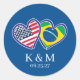 Adesivo Redondo Bandeiras do Coração Brasileiro Americano