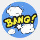Um adesivo redondo clássico, este design apresenta a palavra "Bang" dentro de uma bolha de fala com um fundo azul. Peça o seu hoje! Clipart: AnneIllustration https://www.etsy.com/shop/AnneIllustration