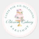 A placa adesiva de padaria elegante e chic apresenta o nosso bolo de aquarela desenhado à mão, de três camadas, decorado com lindas flores e rosas de aquarela. As listras cor-de-rosa pinceladas acrescentam um aspecto chique e moderno. Personalizado com seu nome de empresa. Um adesivo elegante, chic e na moda para o padeiro, padaria, padeiro, cozinheiro, cozinheiro, caterária, casamento e muito mais. Todos os trabalho de arte e logotipos contidos em nosso adesivo de bolo são obras originais desenhadas à mão pela Moodthology Papery. Você pode personalizar a cor de fundo, a fonte e o layout para sua própria preferência pessoal.