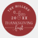 Adicione um toque festivo aos seus convites para o janto de Ação de Graças e muito mais com nossos adesivos vermelhos profundos com seus nomes, o ano, e "banquete de Ação de Graças" em blocos de tendências e tipografia de script com uma ilustração de bolota.