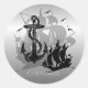 Adesivo Redondo Barco Pirata e Silhueta Preta
