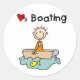 Uma figura de pau-menino vestindo uma jaqueta de vida sentada em um barco à medida que um peixe passa e o texto lê "barco(coração)" em nosso Stick Boy ama t-shirts, camisolas, adesivos, adesivos, ímanes e outros itens.