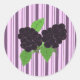 Um adesivo de na moda com amoras suculentas em fundo listrado roxo.
