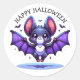 Morcego preto e roxo adorável em autocolantes do estilo cartoon chibi Kawaii.