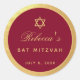 Adesivo Redondo Bat Mitzvah Burgundy Faux Caligrafia Elegante Dour