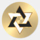 Adesivo Redondo Bat Mitzvah Estrela de Davi Preto Branco em Dourad