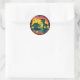 Adesivo Redondo BATALHA ÉPICO do DINOSSAURO no alvorecer