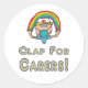 O Clap For Carers apresenta uma enfermeira vestindo uniforme, máscara e chapéu - segurando um arco-íris com a mensagem "Clap For Carers!" abaixo. Design de apoio para toda a saúde e trabalhadores-chave.