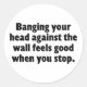 Adesivo Redondo Bater sua cabeça contra uma parede de tijolos