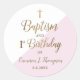 Adesivo Redondo Batismo de Bebê Rosa Personalizada no primeiro ani