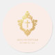 Adesivo Redondo Batismo de Menina Rosa Elegante Crista de Ouro Fal