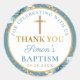 Adesivo Redondo Batismo Dourado Floral Azul-Sujo Obrigado