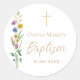 Este adesivo floral do Baptismo apresenta flores silvestres e uma tipografia de cruz e na moda. Facilmente personalizável. Original Watercolor © Michele Davies.