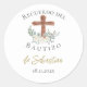 Vinheta redonda branca floral Baptism clássica em espanhol