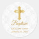 Adesivo Redondo Batismo personalizado em Bonito Damasco Branco e D