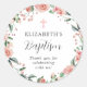 Adesivo Redondo Batismo Rosa-Rosa Simples - Dusta - Obrigado