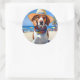Adesivo Redondo Beagle on Beach, presente de verão para amantes de