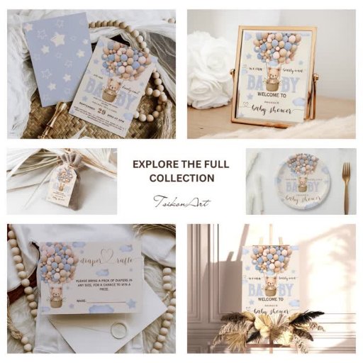 Apresentando a adorável coleção de Chás de fraldas do Urso de TsikonArt, apresentando o urso mais doce, alto e alto, com balões de ar quente coloridos e fofos! Esta coleção apresenta um design irresistível e fofo que é perfeito para celebrar a chegada iminente de um pequeno. Nossa atenção aos detalhes e a arte única realmente separam esta coleção, assim como todas as nossas outras ofertas. Na TsikonArt, orgulhamo-nos de criar designs exclusivos que tornam os seus momentos especiais ainda mais memoráveis. Bem-vindos à nova adição em estilo com a nossa coleção de chás de fraldas de tipo único!