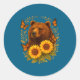 Adesivo Redondo Bear Butterfly Nature Rustic Sunflower Monarch Art